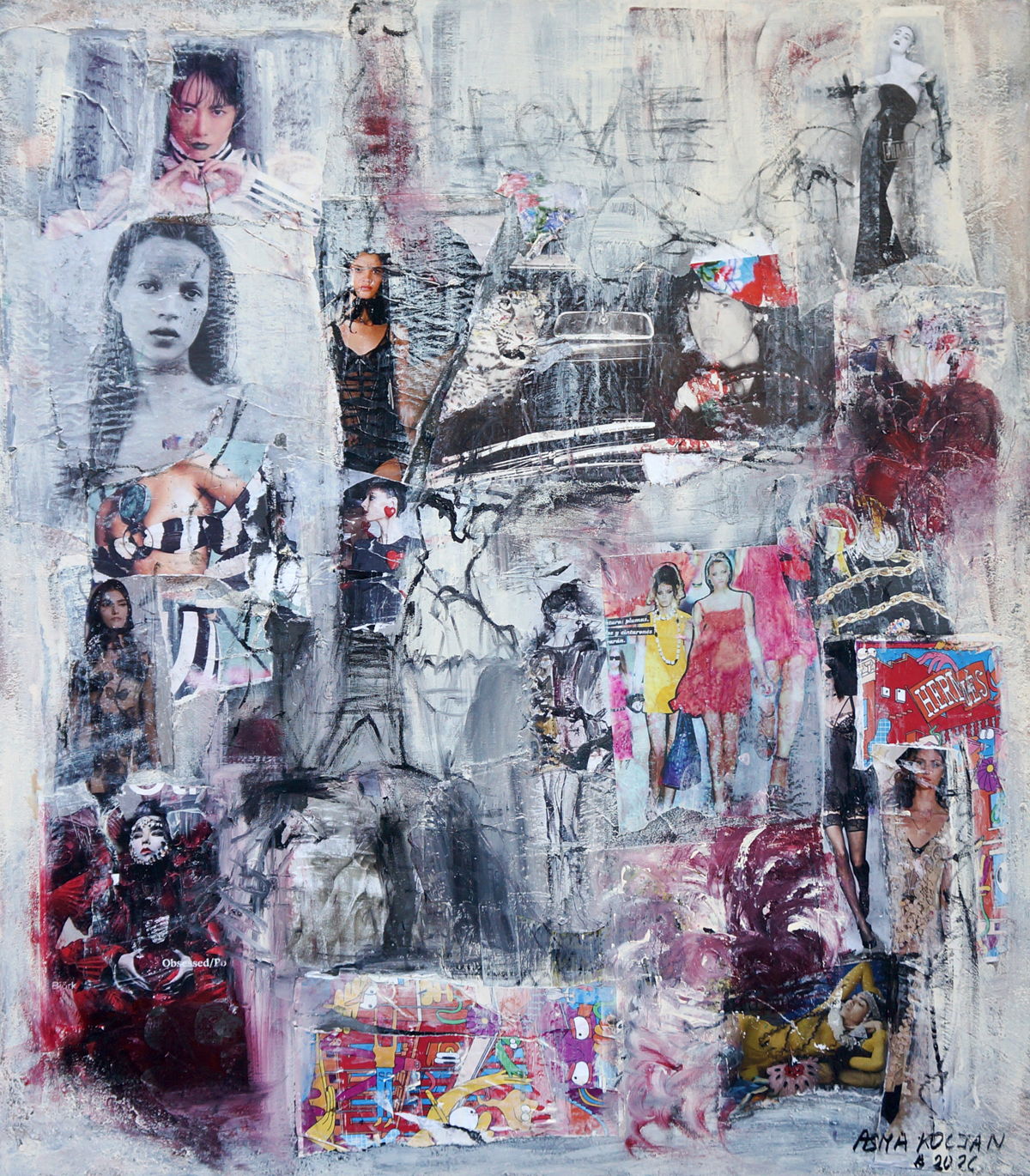 Acrylic-collage-technique on canvas,